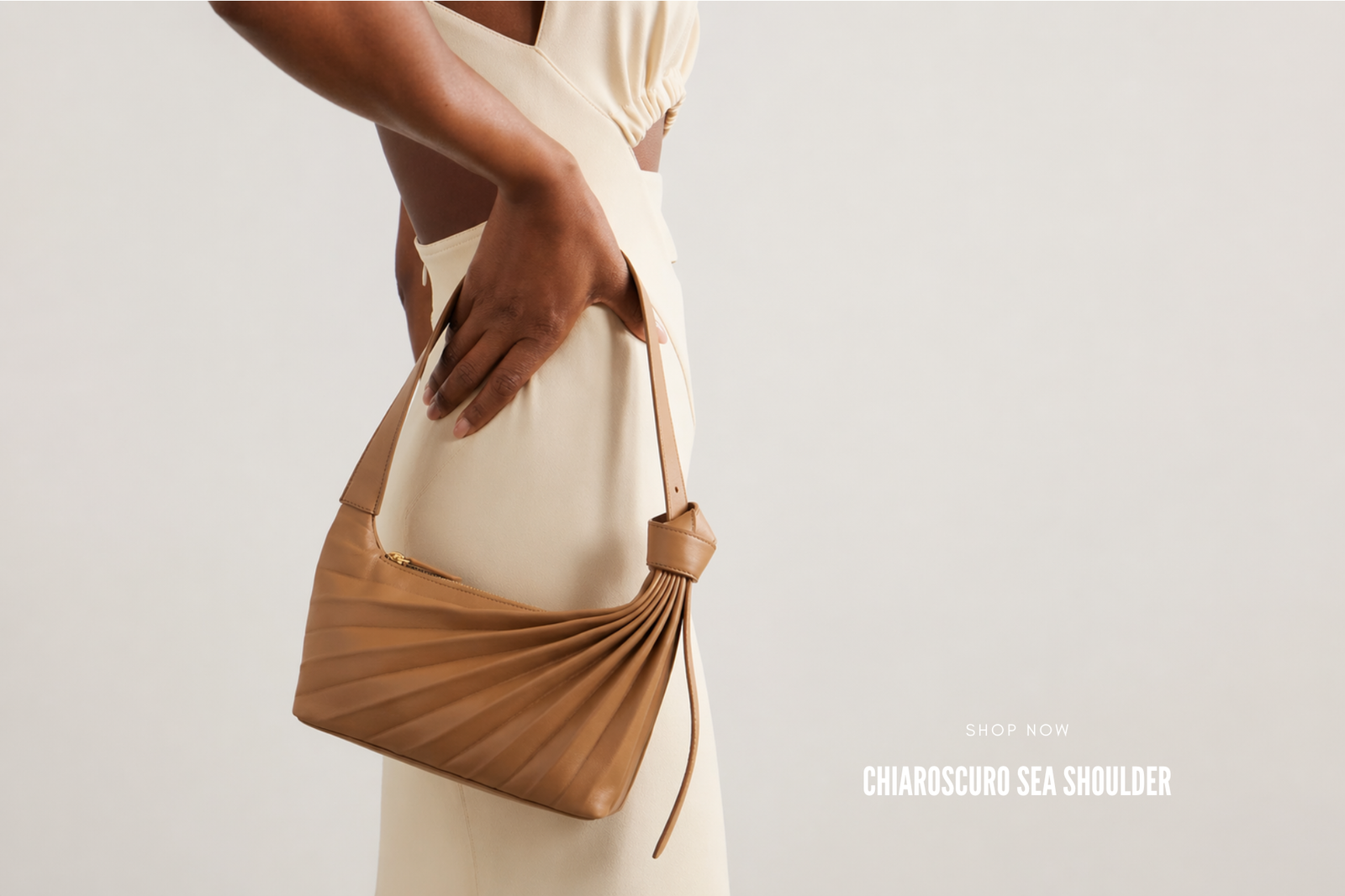 Grounded in emotional utility, hand-pleated leather, and quiet luxury.